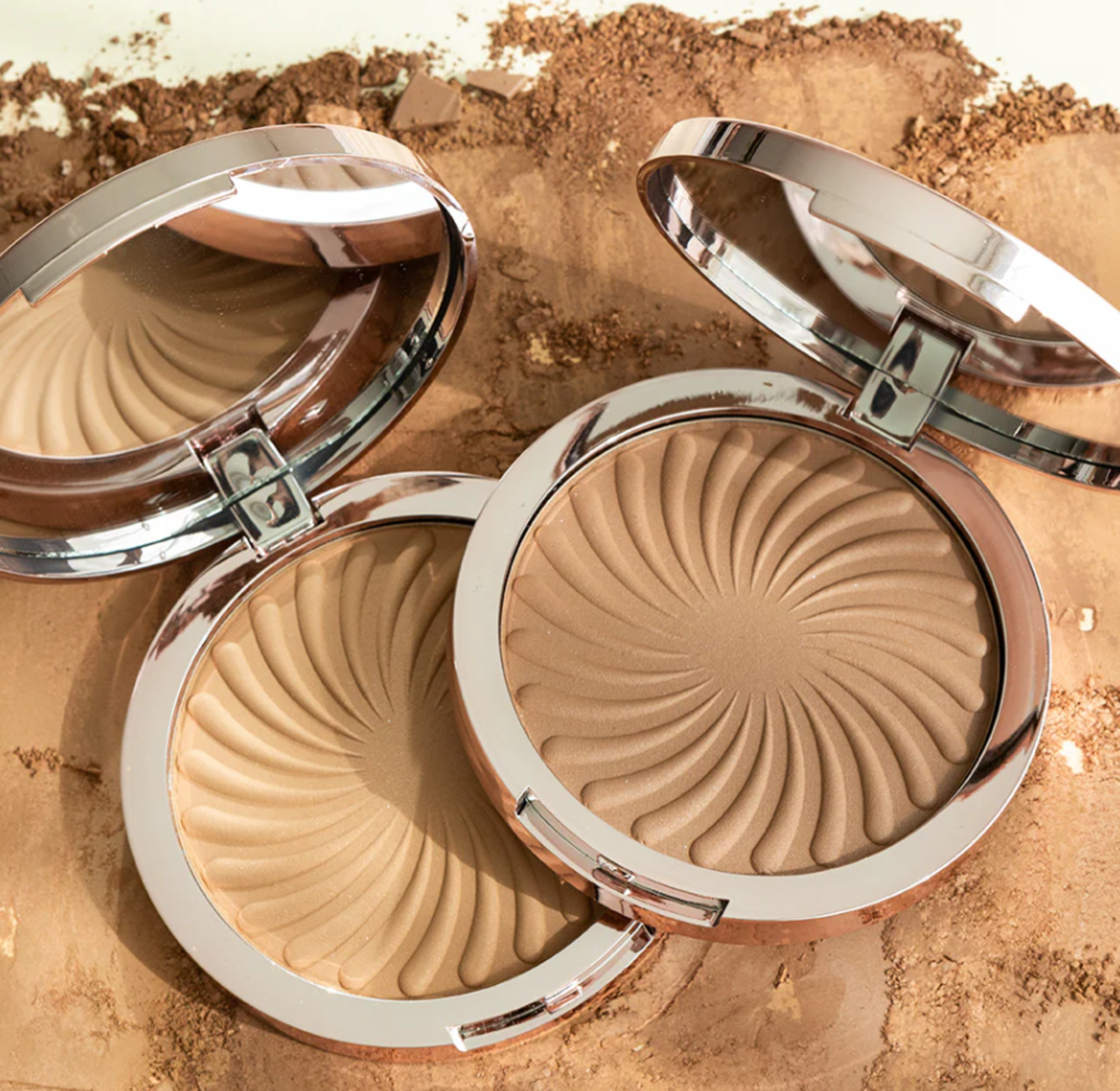 Applica la polvere con il Big Fan Brush sulla fronte, sugli zigomi e sotto la mascella per un effetto abbronzato. Se utilizzi la polvere su tutto il viso, è meglio usare il Big Powder Brush.