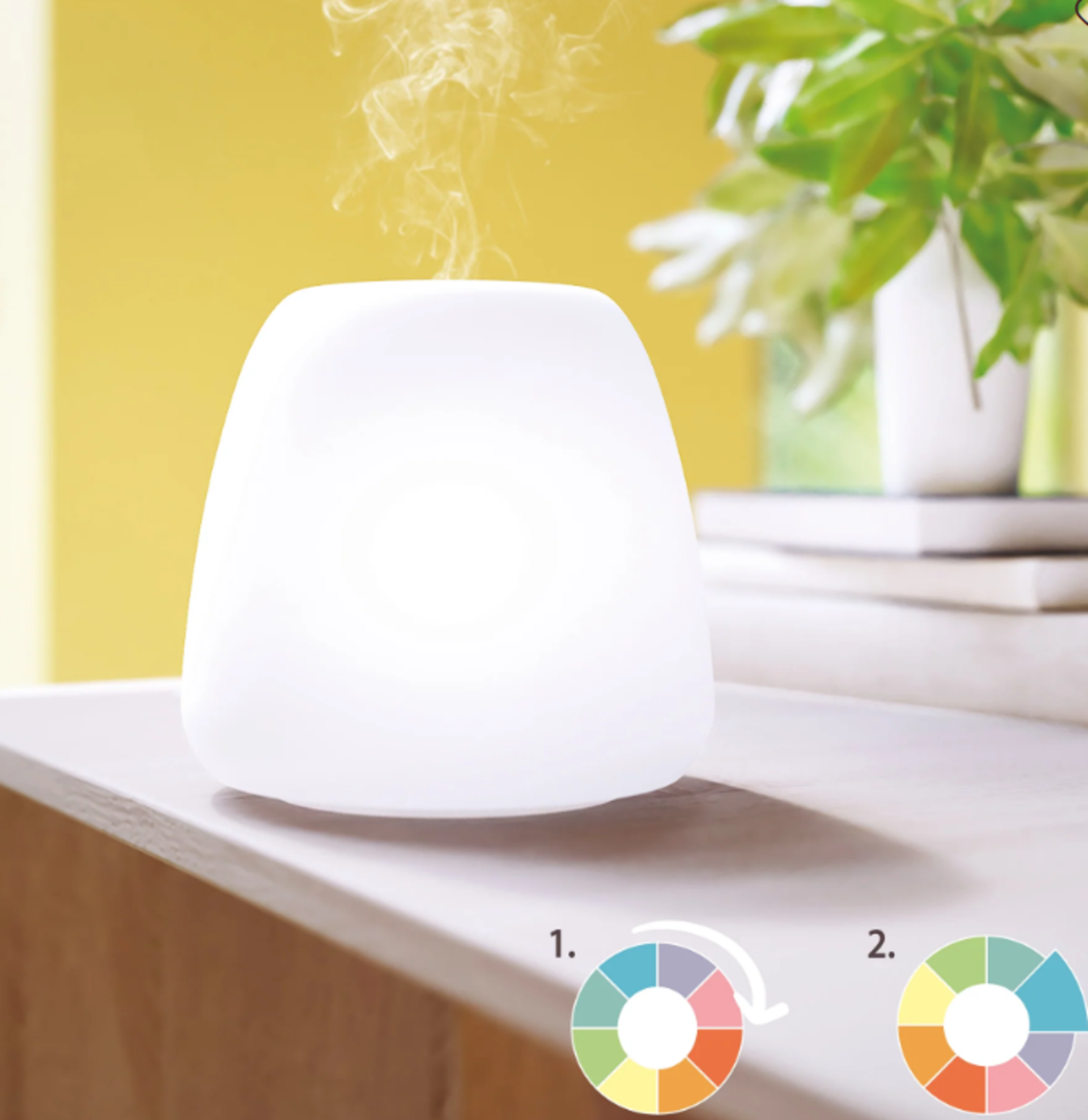 Con la sua graziosa cupola in vetro bianco smerigliato, il diffusore di oli essenziali a ultrasuoni e multisensoriale Joy assicura una nota di freschezza e di colore alla vostra casa.